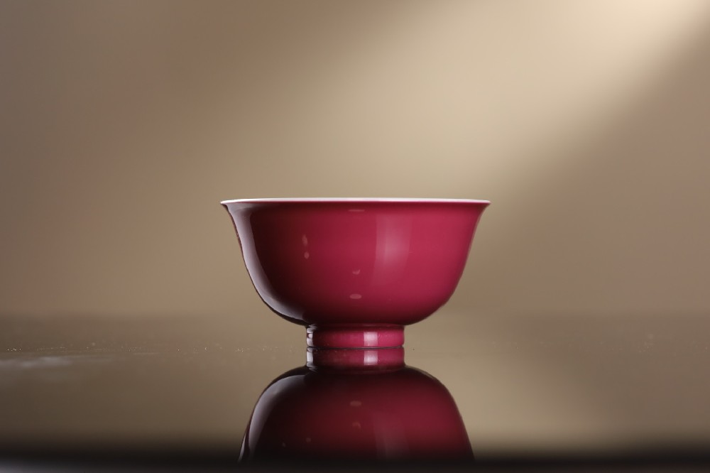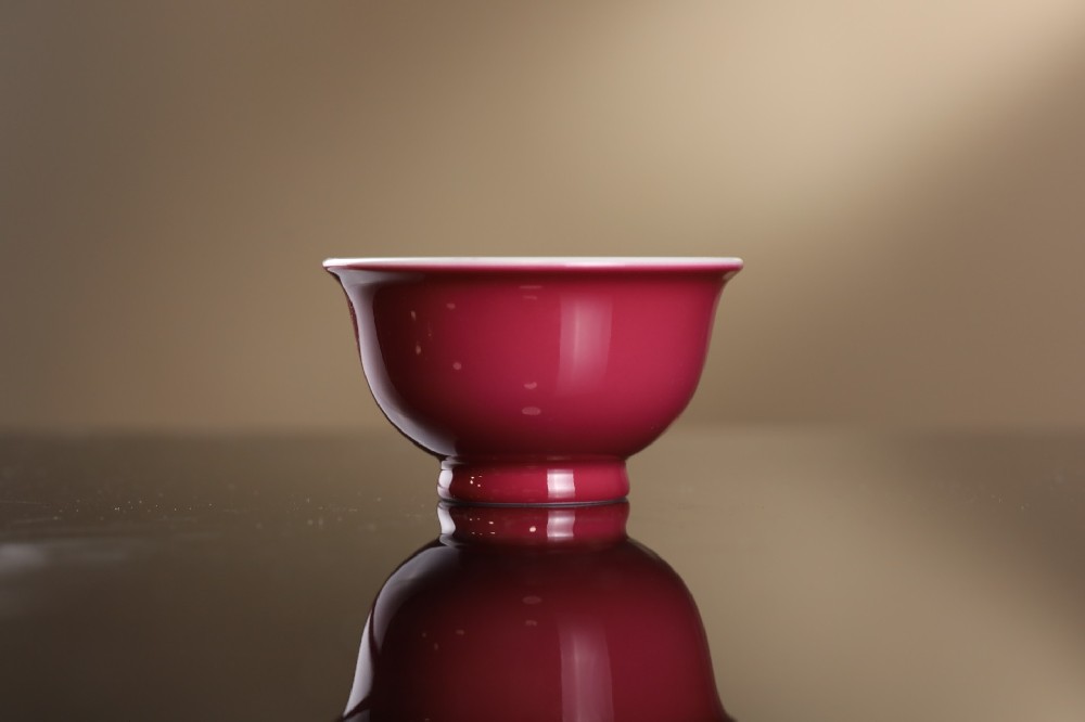 溢珍堂胭脂红莲花压手杯