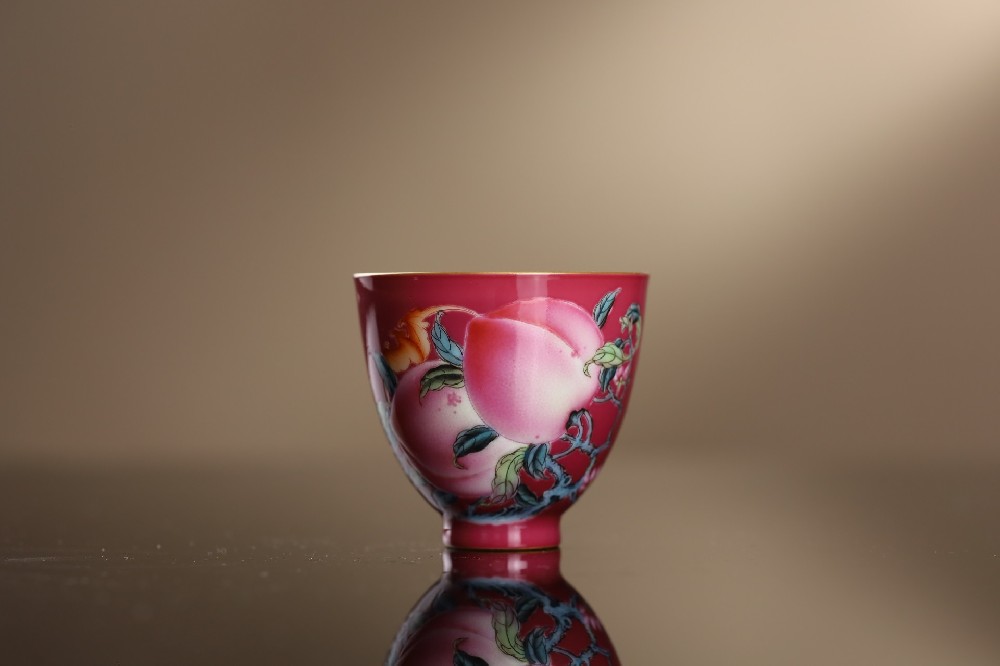 溢珍堂胭脂红三桃小鸡心杯